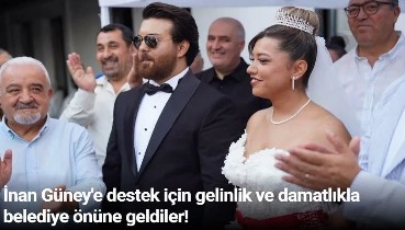 İnan Güney'e destek için gelinlik ve damatlıkla belediye önüne geldiler!