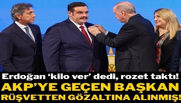 Erdoğan, 'kilo ver' dedi, rozet taktı: AKP'ye geçen başkan rüşvetten gözaltına alınmış!