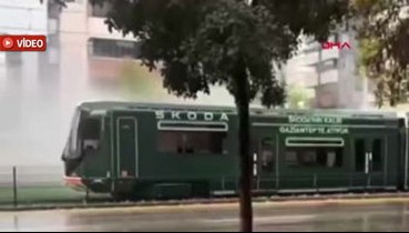 Gaziantep'te şiddetli yağış sırasında seyir halindeki bir tramvaya yıldırım isabet etti