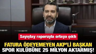 Fatura ödeyemeyen AKP’li başkan spor kulübüne 25 milyon aktarmış!
