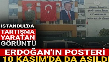 İstanbul'da tartışma yaratan görüntü: Erdoğan'ın posteri 10 Kasım'da da asıldı