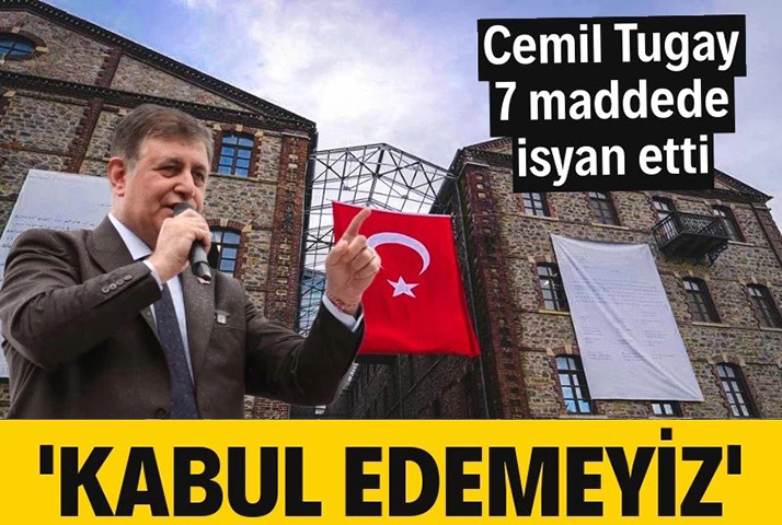 İzmir Büyükşehir Belediye Başkanı Cemil Tugay, Meslek Fabrikası binasının mülkiyetine ilişkin tartışmalara sert tepki gösterdi. Tugay, "Vakıflar Genel Müdürlüğünün hiç bir hakkı olmayan binamıza ilişkin tahliye ve tescil işlemi tamamen haksız ve hukuksuzdur" dedi.