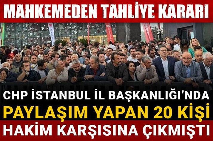 CHP İstanbul İl Başkanlığı’nın polis ablukasına alınması ve Gürsel Tekin'in kayyum atanmasıyla ilgili sosyal medya paylaşımları gerekçe gösterilerek haklarında "suç işlemeye alenen tahrik etme" suçlamasıyla dava açılan aralarında gazeteci Fatoş Erdoğan ve sosyal medya paylaşımları gerekçesiyle tutuklanan Akademisyen Emrah Gülsunar'un da bulunduğu 20 kişi, İstanbul 9. Asliye Ceza Mahkemesi'nde hakim karşısına çıktı.