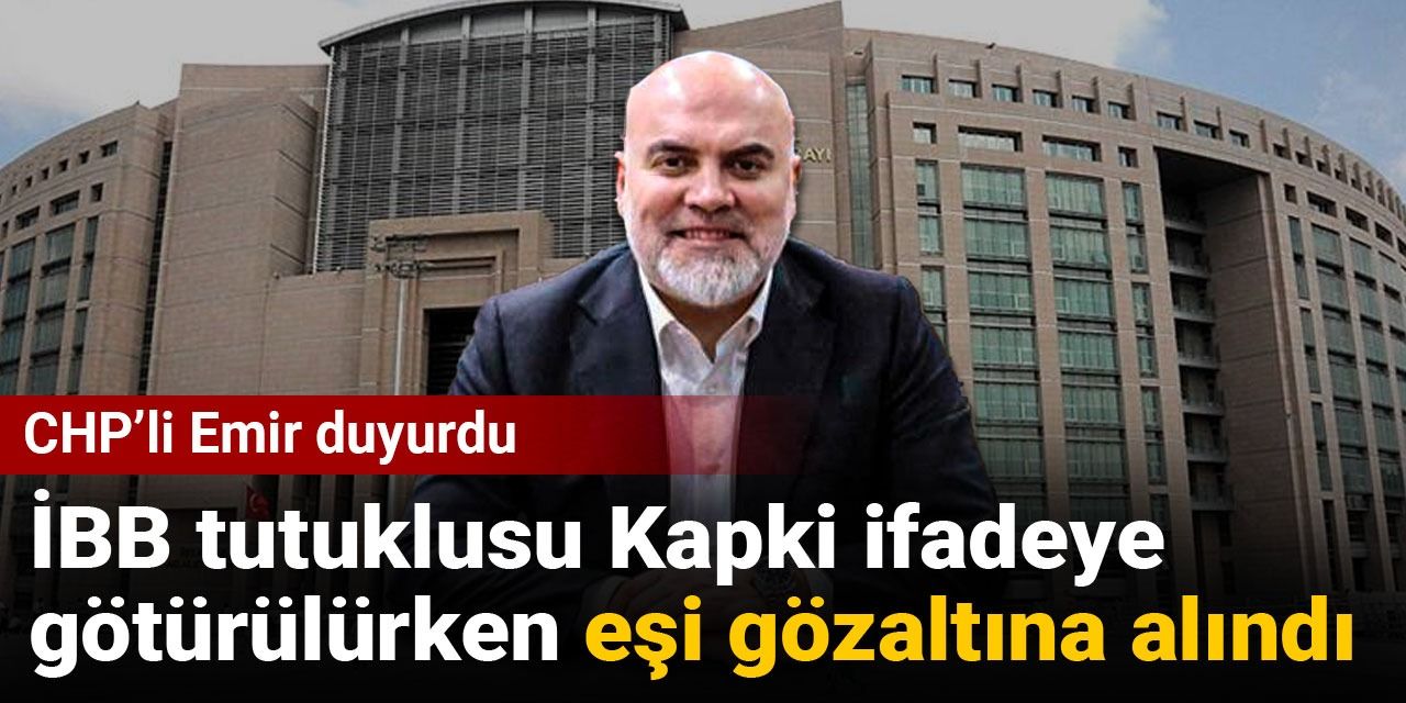 İstanbul Büyükşehir Belediyesi'ne (İBB) yönelik soruşturmada tutuklu olan iş insanı Murat Kapki'nin eşi gözaltına alındı. CHP Grup Başkanvekili Murat Emir, sosyal medyadan yaptığı paylaşımda, "İBB soruşturmasında tutuklu bulunan Murat Kapki’yi savcılığa götürdüğünüz dakikalarda eşini gözaltına alarak itirafçı olmasını sağlamaya çalışmak mıdır?" ifadelerini kullandı.