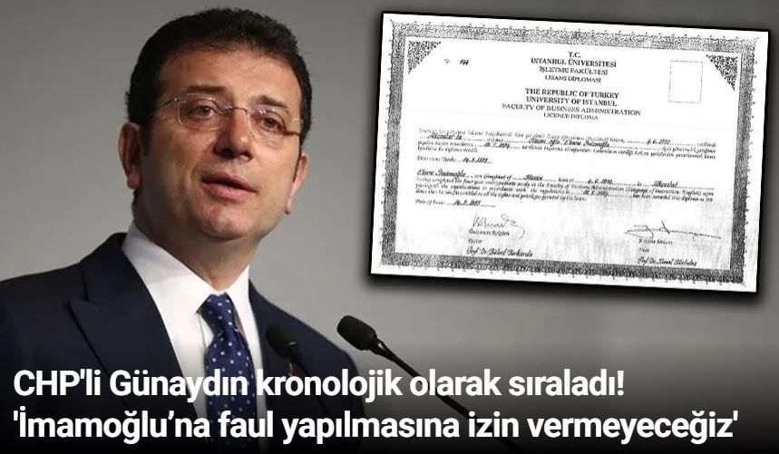 Günaydın, sosyal medya hesabından yaptığı paylaşımda, "Yandaş basının en hızlı tetikçileri, İmamoğlu diplomasının önümüzdeki hafta başında iptal edileceğine ilişkin yazılarla boyalı basını doldurma yarışına giriştiler. Nitekim İstanbul Cumhuriyet Başsavcılığı da, tanımlanmış görevlerinin dışına taşarak, İstanbul Üniversitesi rektörlüğüne üst üste yazılar yazarak diploma iptalini adeta talep ediyor" dedi.