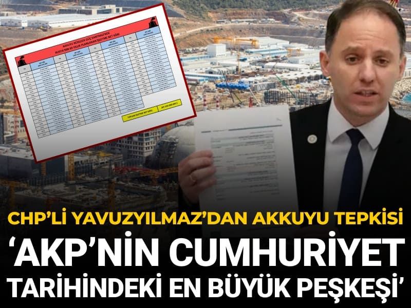 CHP Genel Başkan Yardımcısı Deniz Yavuzyılmaz, Akkuyu Nükleer Güç Santrali'ne ilişkin çarpıcı verileri açıkladı. Yavuzyılmaz, sosyal medya hesabından yaptığı açıklamada, "AKP’nin Cumhuriyet tarihindeki en büyük peşkeşini tespit ettik" ifadelerini kullandı.