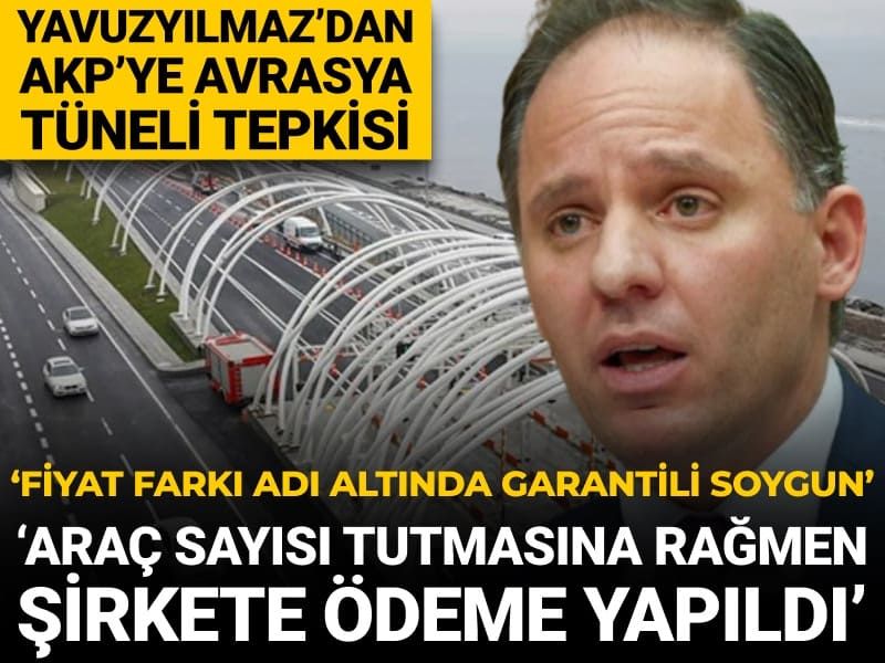 CHP Genel Başkan Yardımcısı Deniz Yavuzyılmaz, Avrasya Tüneli'nde 2025'in ilk yarısında araç geçiş garantisinin aşılmasına rağmen Hazine tarafından işletmeci şirkete "fiyat farkı" adı altında yaklaşık 959 milyon lira ödeme yapıldığını iddia etti. Yavuzyılmaz, resmî verilere dayandırdığı bu ödemeyi "garantili soygun" olarak nitelendirdi.