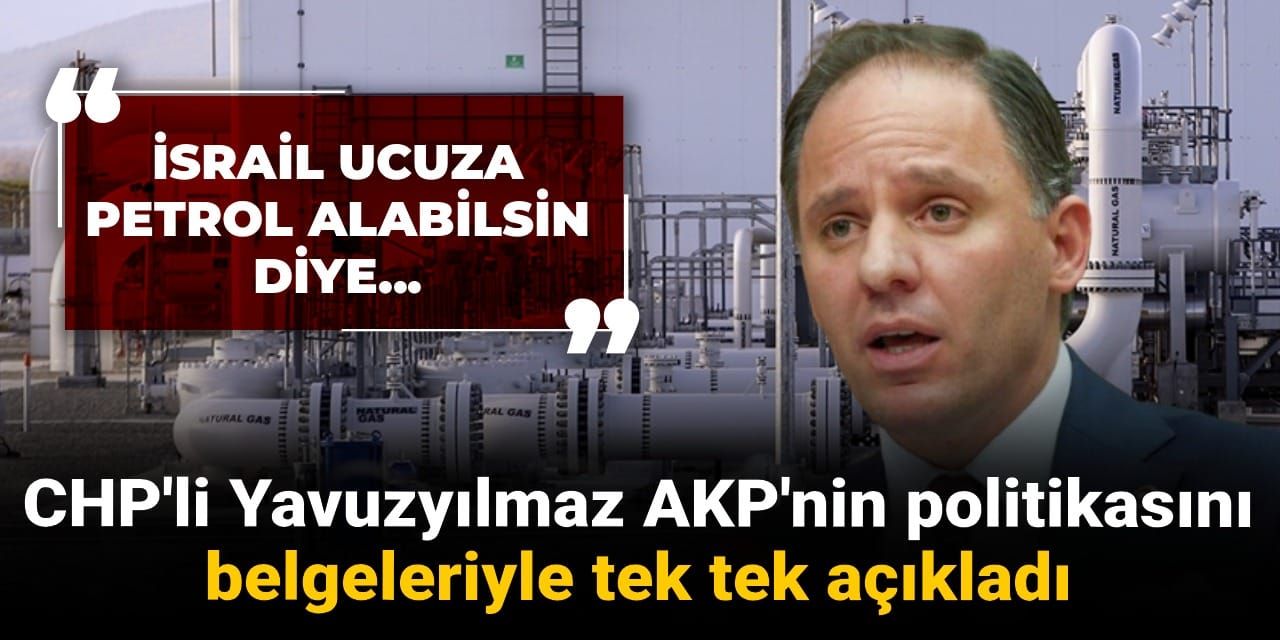 "Cumhurbaşkanı Erdoğan’ın ikiyüzlü İsrail politikasının belgelerini paylaşıyorum" diyen Yavuzyılmaz, "AKP, adeta İsrail ve diğer bazı ülkeler ucuza petrol alsın diye, boru hattından usulsüz petrol taşıma işine giriyor. Bu nedenle Tahkim’de Türkiye’ye devasa cezalar kesiliyor! Böylece başta İsrail, Yunanistan ve Güney Kıbrıs Rum Kesimi olmak üzere; Irak devletinden izinsiz taşınan petrolü ucuza alan ülkelere yapılmış indirim tutarını, Türkiye ceza olarak ödeyerek, bir nevi sübvanse etmiş oluyor" ifadelerini kullandı.