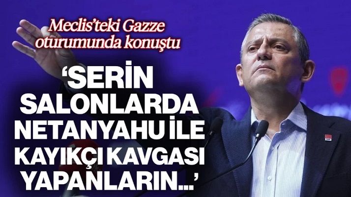 İktidarın Gazze konusundaki tutumuna yönelik sert eleştiriler getiren Özel, "Serin salonlarda Netanyahu ile kayıkçı kavgası yapanların, Netanyahu’ya laf edip, destekçisi Trump’a laf edemeyenlerin gizlendikleri maskeler düşmüştür. 8 Ekim 2023’ten bu yana İsrail ile ticaretin kesilmesini istedik. İsrail ile ticaret üçüncü kişiler üzerinden devam etti, bunu da belgeleriyle ortaya koyduk. Ticaretin devam etmesine tepki gösteren gençlerin gözaltına alınmasının bir suçluluk psikolojisi olduğu ayan beyan ortada" ifadelerini kullandı.