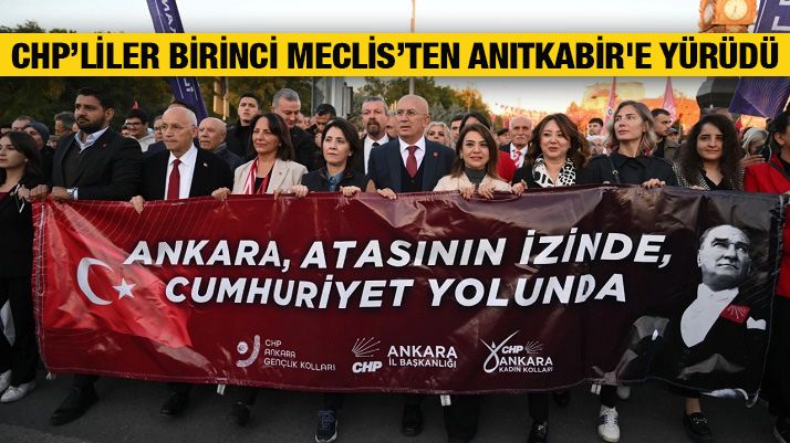 CHP Ankara İl Başkanlığı, 29 Ekim Cumhuriyet Bayramı dolayısıyla Ulus Atatürk Heykeli'nde çelenk töreninin ardından Birinci Meclis önünden Anıtkabir'e yürüdü.