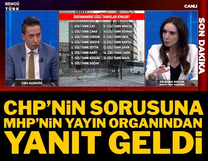 İddianamedeki gizli tanık iddialarına ilişkin Bengü Türk'ten Dilruba Koçak'ın haberine göre, Hala soruşturması devam eden diğer olaylarla alakalı olduğu için bu 5 gizli tanığın beyanına iddianamede yer verilmediği belirtildi.