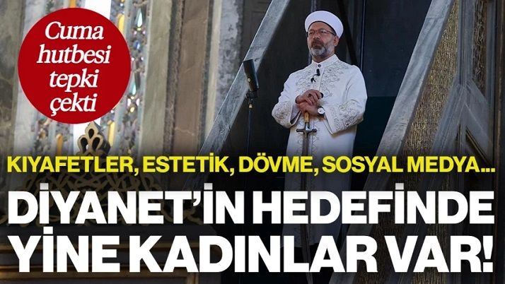 Diyanet İşleri Başkanlığı, Cuma namazı için hazırladığı “Hayâ: Allah’ın Emri, Fıtratın Gereği” başlıklı hutbede, kadınların giyim tarzı, estetik ameliyatlar ve dövmeleri hedef aldı. 81 ildeki camilerde okutulan hutbede, 'kısa ve şeffaf kıyafetler'in giyilmesinin “Allah’ın örtünme emrini ihlal” olduğu belirtilerek, bu tür kıyafetlerin “haram” olduğu belirtildi.