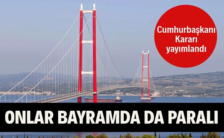 Buna göre, bayram tatili dolayısıyla KGM'nin sorumluluğu altında bulunan otoyollar ile 15 Temmuz Şehitler ve Fatih Sultan Mehmet köprüleri, ücretsiz hizmet verecek.