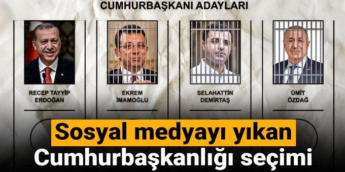 Erdoğan’ın olası üç rakibi de oy pusulasında demir parmaklıklar ardında resmedildi.