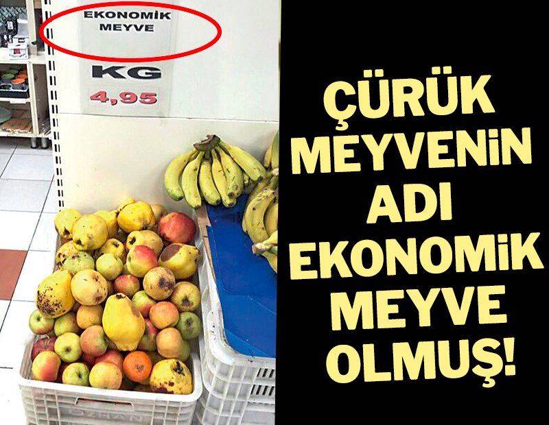 Ekonomik kriz ülkede her geçen gün kendini daha fazla hissettirmeye başladı. Vatandaş evine ekmek götürmekte zorlanırken, bu olumsuz etkinin en büyüğü mutfakta yaşanıyor. Her ürüne yağan zamlar yüzünden millet pazar ve marketlere uğrayamaz oldu. Artan hayat pahalılığına karşı işletmelerin uyguladığı yöntemler gündem olmaya devam ediyor. Düşen alım gücü nedeniyle ‘ucuz olsun' diye yapılan boş baklava, boş tost ve boş gözlemeden sonra bir markette çürük meyveler “ekonomik meyve” olarak satışa sunuldu.