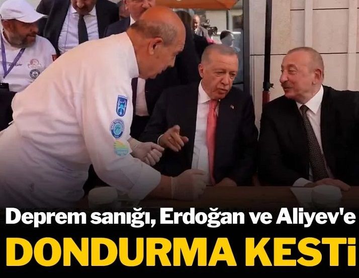 Karne töreninin ardından Erdoğan ve Aliyev, Kahramanmaraş dondurması ikramı için MADO şubesine geçti.