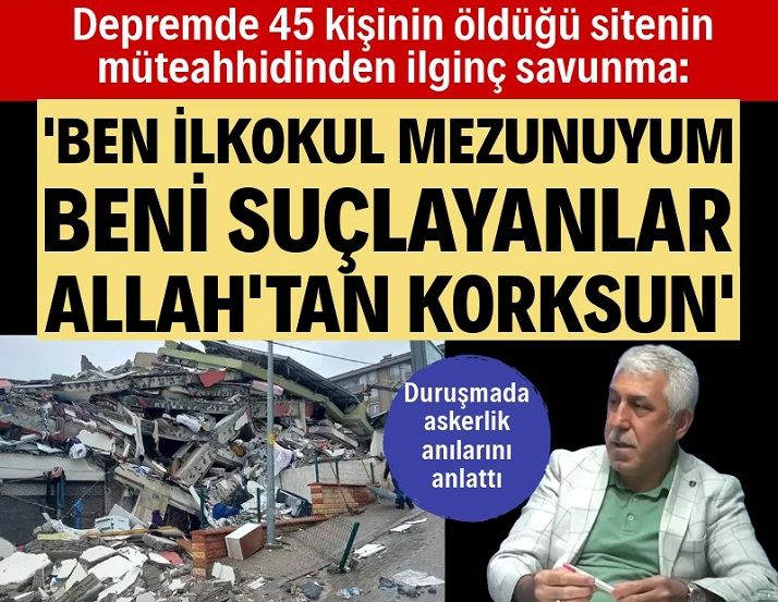 "Ben ilkokul mezunuyum. Beni suçlayanlar Allah'tan korksun, bu dünyanın ahireti de var. 'Hasan Çam inşaata müdahale etti diyorlar.' Allah korkunuz yok mu."