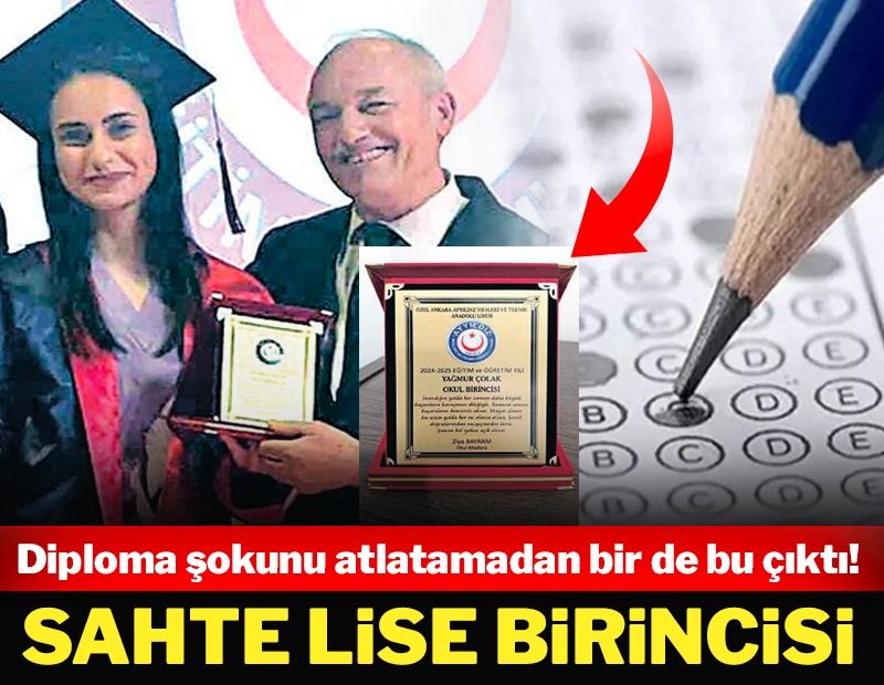 Sahte diploma skandalında her gün yeni bir ayrıntı ortaya çıkıyor. Bu kez de ‘sahte okul birincisi’ skandalı patladı. Keçiören’de bulunan Özel Ankara Ayyıldız Mesleki ve Teknik Anadolu Lisesi, 4 yıllık not ortalamalarını hesaplayıp Yağmur Çolak’ı ‘okul birincisi’ ilan etti.