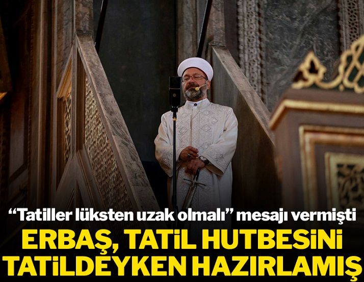 Diyanet İşleri Başkanlığı’nın 8 Ağustos tarihli Cuma hutbesinde yurttaşların tatil anlayışına yönelik eleştiriler dikkat çekmişti. Birgün’den Mustafa Bildircin’in haberine göre, söz konusu hutbe hazırlanırken Diyanet İşleri Başkanı Ali Erbaş tatildeydi.