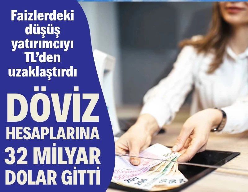 Merkez Bankası’nın faiz indirimi sonrası TL mevduat faizleri düşerken, döviz hesaplarına ilgi arttı. Yurtiçi yerleşiklerin döviz mevduatları yıl başından bu yana 32 milyar dolar artış gösterdi.