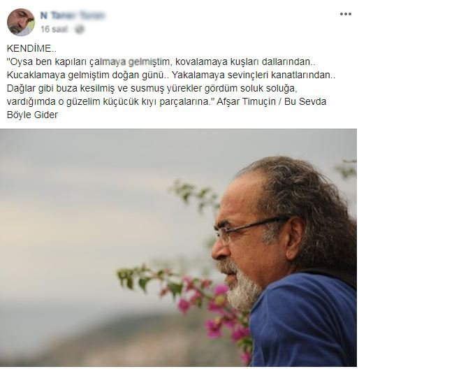 Nevzat Taner Turan’ın, akşam 22:19’da sosyal medya hesabından yaptığı paylaşım sonrası intihar ettiği ifade ediliyor.