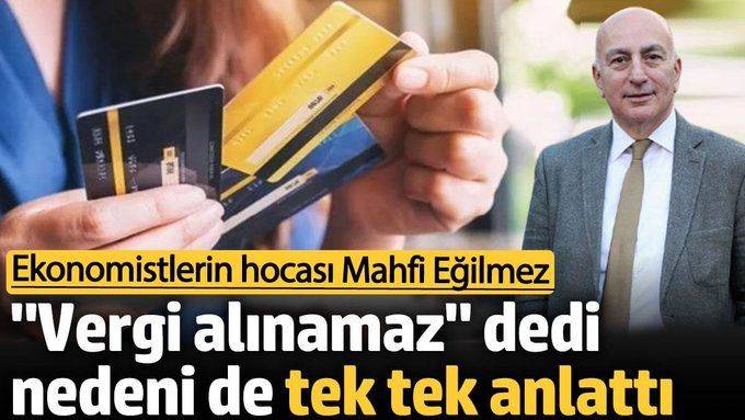 Kredi kartı limitinden de kullanılan krediden de vergi alınamayacağını söyleyen Mahfi Hoca "Kredi borçtur. Vergi, borçludan değil krediyi veren alacaklıdan alınır. Bilimden uzaklaştıkça feci bir kavram kargaşasının içine giriyoruz" dedi.