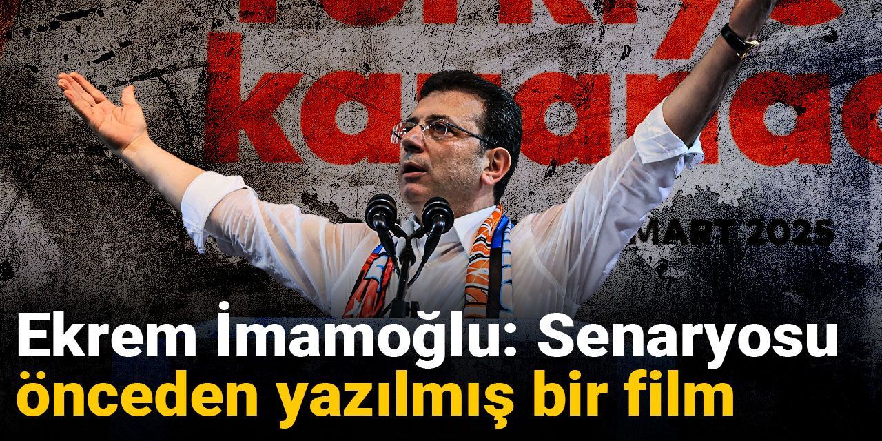 19 Mart'taki şafak operasyonu ile zirve yapan tutuklama kararlarını eleştiren Ekrem İmamoğlu, "Belediye başkanlarımızı, siyasi arkadaşlarımı, onurlu bürokratlarımızı ve yol arkadaşlarımızı tutuklu zannetmeyin. Senaryosu önceden yazılmış bir film sergileniyor adeta" dedi.
