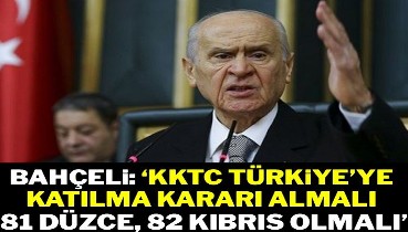 Bahçeli: "KKTC Türkiye'ye katılma kararı almalı, 81 Düzce'den sonra 82 Kıbrıs olmalıdır"6 izlenme