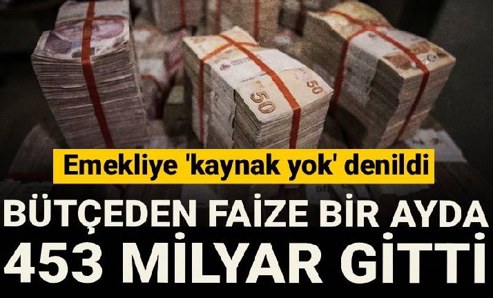 Sözcü'de yer alan habere göre, burada dikkat çekici olan Ocak ayında yapılan faiz ödemelerinin oranı oldu. Raporda faiz ödemelerinin 453 milyar 680 milyon TL ile toplam giderlerin yaklaşık yüzde 28'ini oluşturduğu görüldü.