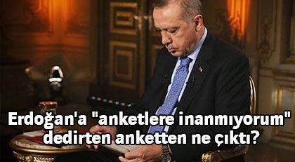 Cumhurbaşkanı ve AKP Genel Başkanı Tayyip Erdoğan, geçen günlerde 31 Mart seçimleri ile ilgili katıldığı bir televizyon kanalının canlı yayınında "anketlere güvenmiyorum"demişti. Peki, kamuoyunda birbirinden farklı sonuçlar açıklayan anket şirketlerinin raporları Erdoğan’ın önüne konurken, Cumhurbaşkanı Erdoğan hangisini duyunca reddetti.