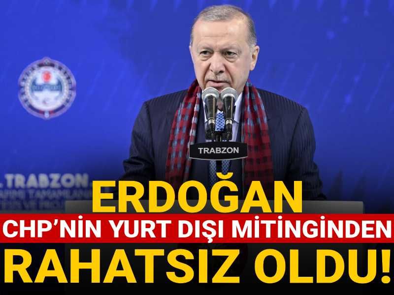 Konuşmada, CHP'nin yurt dışında yaptığı mitingleri ve CHP Genel Başkanı Özgür Özel'in yaptığı açıklamalar hedef alan Erdoğan, " Haklarında milyarlarca liralık yolsuzluk iddiası olan haramileri yargılamadan kaçırmak için batılı yasadışı adete harcıyorlar. Kendi devleti hakkında açıkça yalan söylüyorlardı. Yabancıların sağlığında ülkeyi eleştirmekten hiç mi hicap duymuyorsun? Kendi itibarını umursamıyorsun bu milletin onurunu çiğnetme. Bunlar..." dedi.