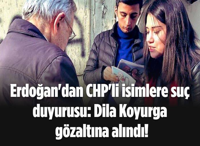 AKP'li Cumhurbaşkanı Erdoğan'ın avukatı Ahmet Özel, Cumhurbaşkanına hakaret ettiği gerekçesiyle CHP Gençlik Örgütleri İzmir İl Sekreteri ve Karabağlar Belediye Meclis Üyesi Dila Koyurga hakkında İzmir Cumhuriyet Başsavcılığı’na suç duyurusunda bulundu.