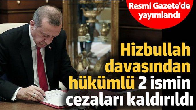 Erdoğan imzalı kararla, 1998 yılında Hizbullah davasından yakalanan ve 2008’de müebbet hapis cezasına çarptırılan Hamit Çöklü'nün de "sürekli hastalık" durumu gerekçesiyle kalan cezası kaldırıldı.