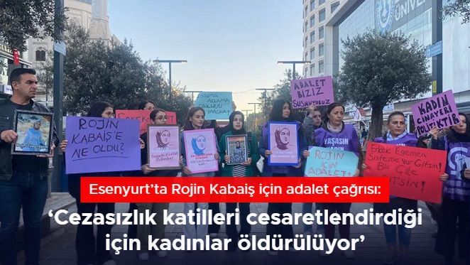 Esenyurt Kadın Platformu, Esenyurt Tabela Meydanı’nda yaptığı basın açıklamasıyla 21 yaşındaki üniversite öğrencisi Rojin Kabaiş’in şüpheli ölümü başta olmak üzere kadın cinayetleri ve şüpheli kadın ölümlerine dikkat çekti. Açıklama, platform adına Nurgül Uci tarafından okunurken, eyleme Rojin Kabaiş’in amcası Ahmet Kabaiş de katıldı.