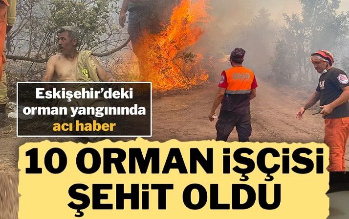 Eskişehir'in Seyitgazi ilçesinde dün ormanlık alanda çıkan yangını söndürme çalışmalarından acı haber geldi.. Çalışmalar sırasında alevlerin arasında kalan 10 kişi şehit oldu.