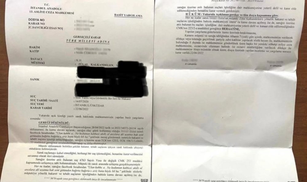 Konunun üzerine giden Kalkandelen, İ.B. hakkında ikinci kez suç duyurusunda bulundu. İstanbul 13. Asliye Ceza Mahkemesi, İ.B. ile ilgili “delil yetersizliğinden” beraat kararı verdi. Zülal Kalkandelen, Cumhuriyet’e konuşarak mahkemenin kararına şu sözlerle tepki gösterdi: