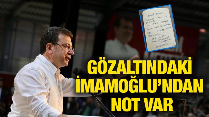 İmamoğlu, kendi el yazısıyla gönderdiği notta şunlara yer verdi: