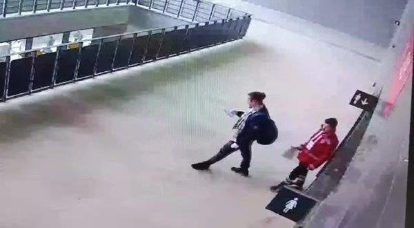 Yabancı madde bir süre yanmaya devam etti. Taraftarlar yabancı maddeyi bir süre sonra uzaklaştırdı.