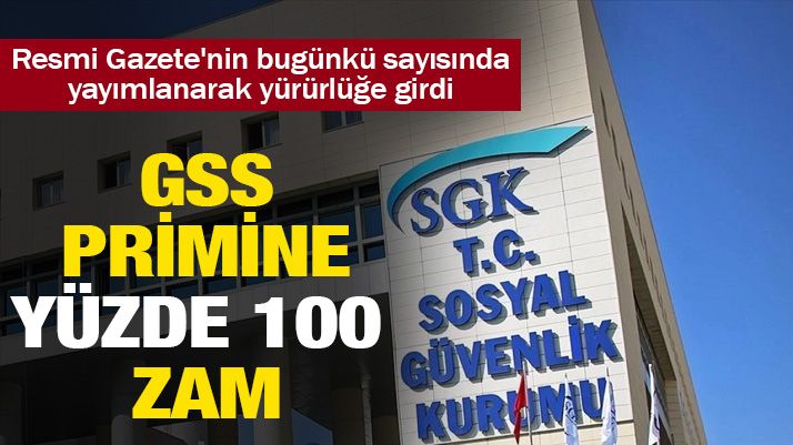 İlgili Cumhurbaşkanı kararı Resmi Gazete'nin bugünkü sayısında yayımlanarak yürürlüğe girdi. Buna göre halen 780,17 TL olan GSS primi, 1 Aralık 2025 tarihinden itibaren 1560,34 TL olarak uygulanacak.