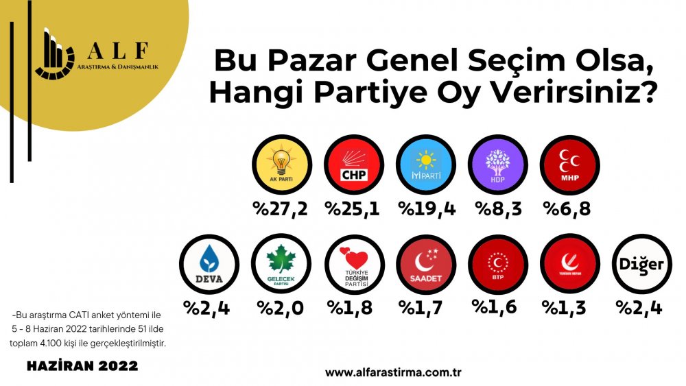 ALF Araştırma şirketi 51 ilde toplam 4100 seçmenle yaptığı son çalışmanın sonuçlarını açıkladı.