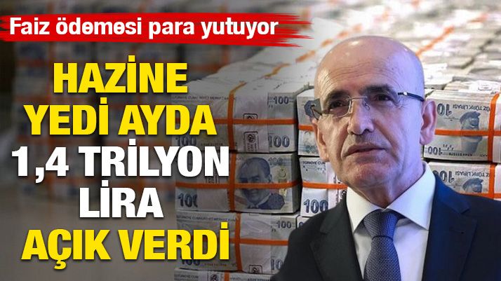 Hazine nakit dengesi, Temmuz ayında 68 milyar 491 milyon lira açık verdi. Böylece yedi aylık açık, 1 trilyon 362 milyar 301 milyon TL'ye yükseldi.