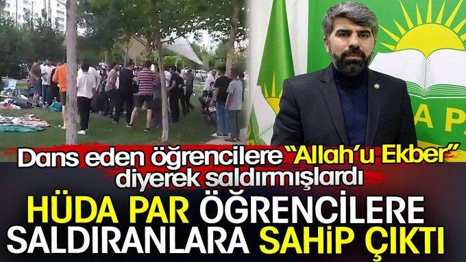 HÜDA PAR Genel Başkan Yardımcısı Faruk Dinç, öğrencilere saldıranlara sahip çıktı. Saldırıyı savunan Dinç “Sapkınlığa hayır" görseli paylaşarak “Toplumun değer yargılarını hedef alarak teşhircilik yapılması halkımızı rahatsız etmiştir" dedi.