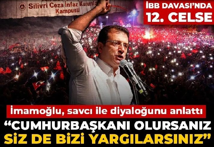 İmamoğlu, Cumhurbaşkanı Recep Tayyip Erdoğan ve Akın Gürlek’e seslendi, “Çıkalım şehir şehir gezelim yağma talan rant deyince kim gelecek bu milletin aklına. Savcılar bile soru sorarken beyana göre diyor delile göre demiyor. Kimi malıyla kimi eşiyle tehdit edildi. Asrın hukuksuzluklarına imza atılıyor. Şimdi çıkmış CHP Genel Başkanını, Muhittin Böcek’i tehdit ediyor. Utanmadan mahkeme salonları siyaset sahnesi değildir diyorlar. Savcı cübbesiyle asrın yolsuzluğu deyip bakan koltuğunda da aynı sözü söyleyen kim?” dedi.