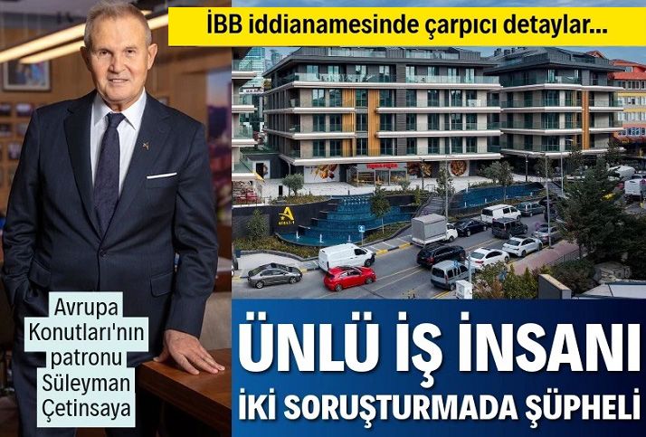 AKP iktidarında Avrupa Konutları markasıyla İstanbul'da çok sayıda projeyi hayata geçiren Süleyman Çetinsaya hakkında, Şişli'deki konut projesi ve Boğaz'daki eviyle ilgili olarak rüşvet verdiği iddialarına yer verildi.