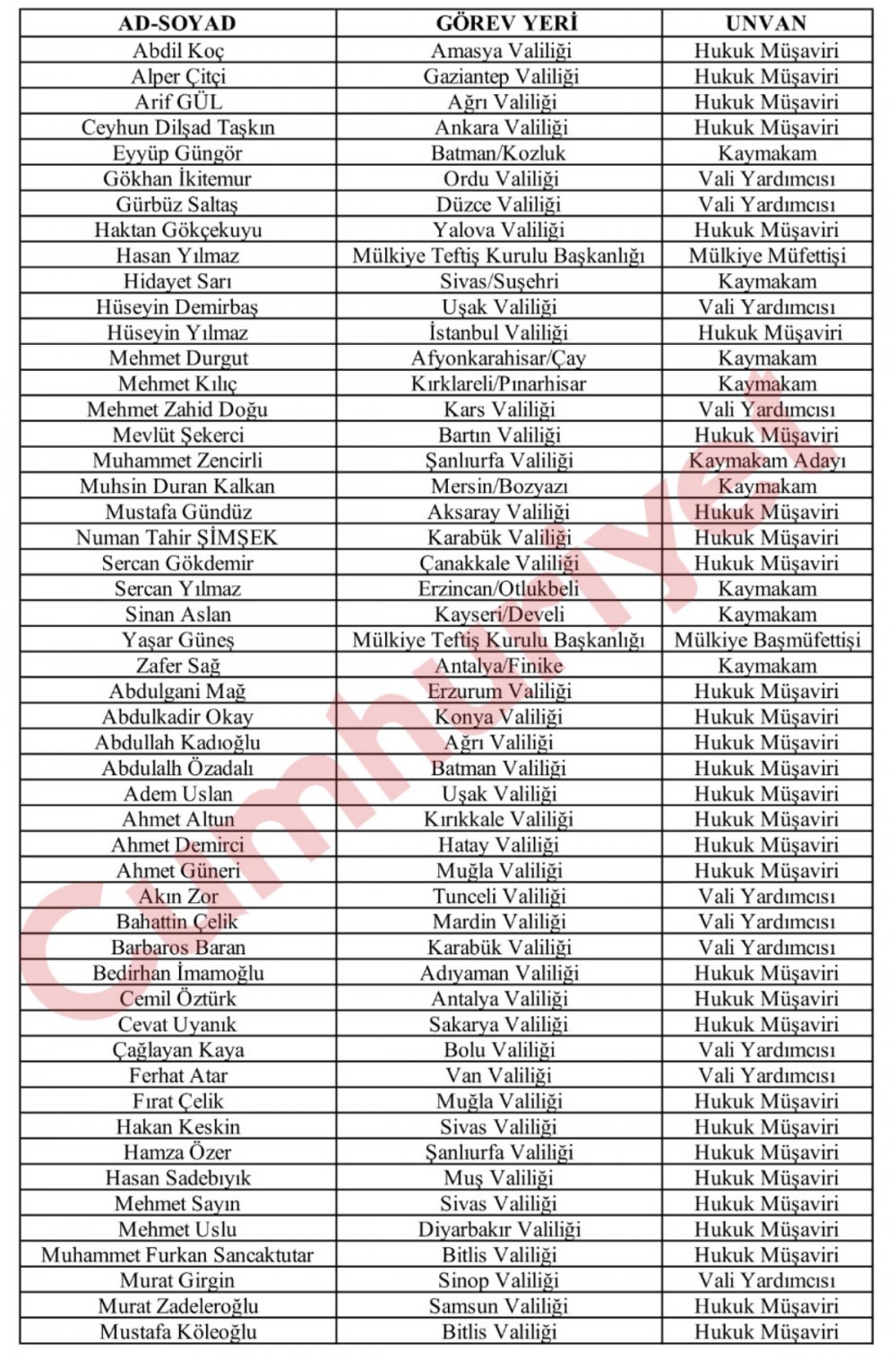 Listede ayrıca Gaziantep Valiliği'nde Hukuk Müşaviri olarak görev alan Alper Çiftçi ve İstanbul Valiliği'nde Hukuk Müşaviri olarak görev alan Hüseyin Yılmaz isimleri de dikkat çekiyor. İki ismin ortak noktası daha önce Gaziantep Vali Yardımcılığı görevinde bulunmuş olmaları ve isimlerinin yolsuzluk dosyasına karışmış olması.