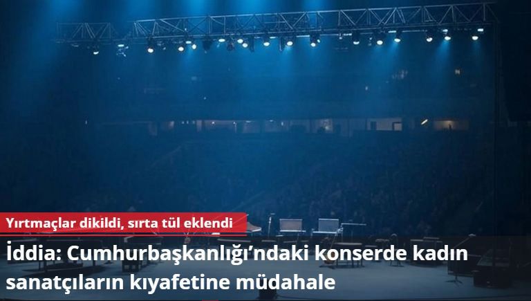İddiaya göre, orkestranın kadın sanatçılarının yıllardır giydiği geleneksel konser kıyafetleri, tören için son anda değiştirildi, kadın sanatçılarının kıyafetlerindeki yırtmaçlar dikildi ve sırt bölgelerine siyah tüller eklendi.