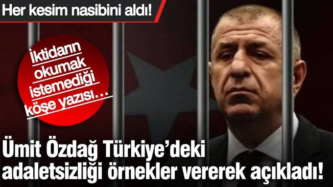 “Cumhurbaşkanına hakaret” ve "halkı kin ve düşmanlığa tahrik veya aşağılama" suçlamasıyla tutuklanan Zafer Partisi Genel Başkanı Ümit Özdağ, Türkiye’deki adaletsizliği örnekler vererek Sözcü TV’de köşe yazısıyla anlattı.