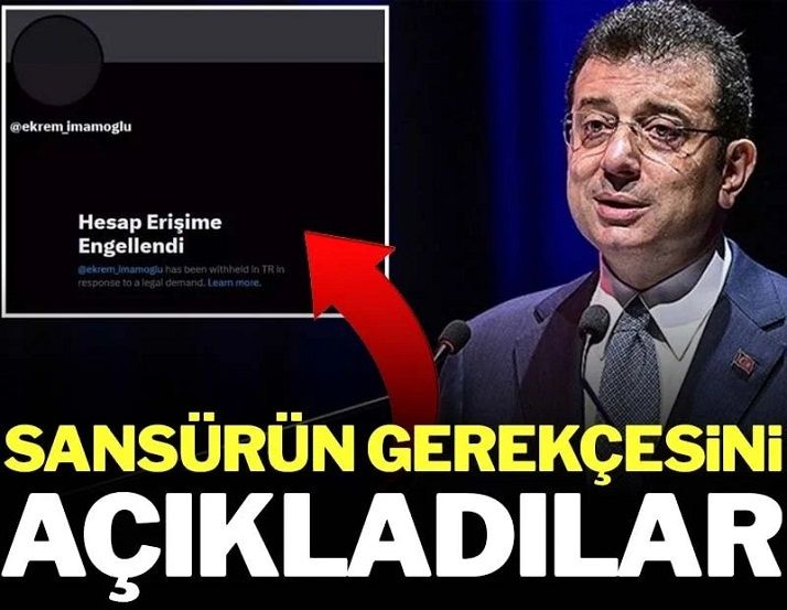 İstanbul Nöbetçi Sulh Ceza Hakimliğinin kararına istinaden 5651 sayılı kanunun (İnternet Ortamında Yapılan Yayınların Düzenlenmesi ve Bu Yayınlar Yoluyla İşlenen Suçlarla Mücadele Edilmesi Hakkında Kanun) 8/A maddesinin 1. ve 3. fıkraları uyarınca şüpheliye ait (https://x.com/ekrem_imamoglu?s=21) URL adresli hesabın tamamına erişimin engellenmesine dair karar verilmiş ve karar uyarınca erişim engeli bugün itibarıyla uygulanmaya başlanmıştır.
