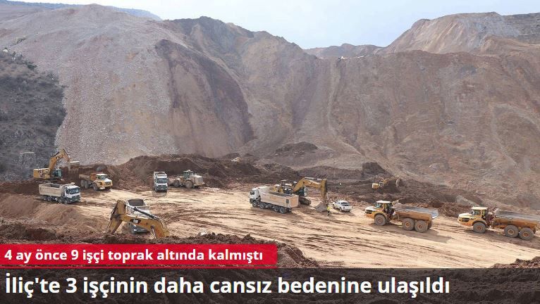 ANKA'nın aktardığına göre, İliç ilçesinde faaliyet yürüten maden ocağında, liç kaymasından 114 gün sonra bugün 3 işçinin daha cansız bedenine ulaşıldı.