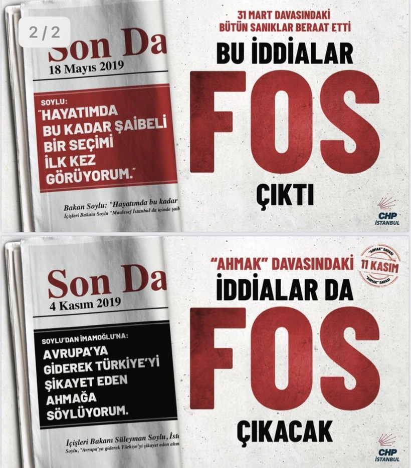 Bakan “Az önce polis kardeşlerimiz CHP İstanbul İl Bşk. hazırladığı afişler ile ilgili bu yazışmayı gönderdi. ‘Sayın vekilim, biz devletin polisiyiz, AKP’nin polisi değiliz. Bu koşullarda nasıl polislik yapacağız? Talimat ile mahkeme kararı mı alınır, teşkilat rahatsız'” diyorlar. İstanbul İl Emniyet Müdürü (@ZaferAktas3310) bunu açıklamak zorundasın. AKP İl Başkanı gibi davranmak istiyorsan üzerindeki üniformayı çıkart. Eğer bu afişlerle ilgili bir toplatma kararı çıkarsa, bu yargıya talimat verilmiş demektir. Toplatmak istedikleri afişi şimdi sadece İstanbul değil tüm Türkiye görecek.
